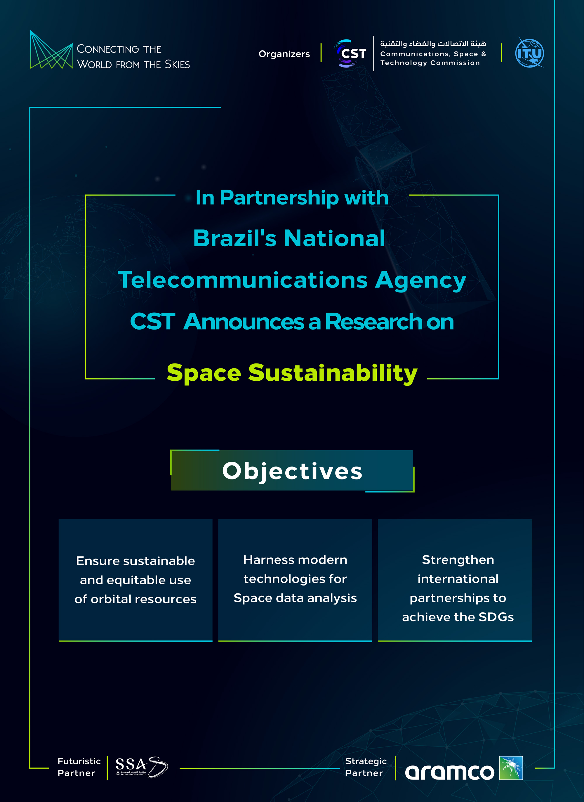 In his opening speech at the Connecting the World from the Skies Global Forum 2024, H.E. Dr. Mohammed Altamimi, Governor of CST, urged the global community to join forces in this endeavor, supporting research studies related to Space sustainability for future generation.