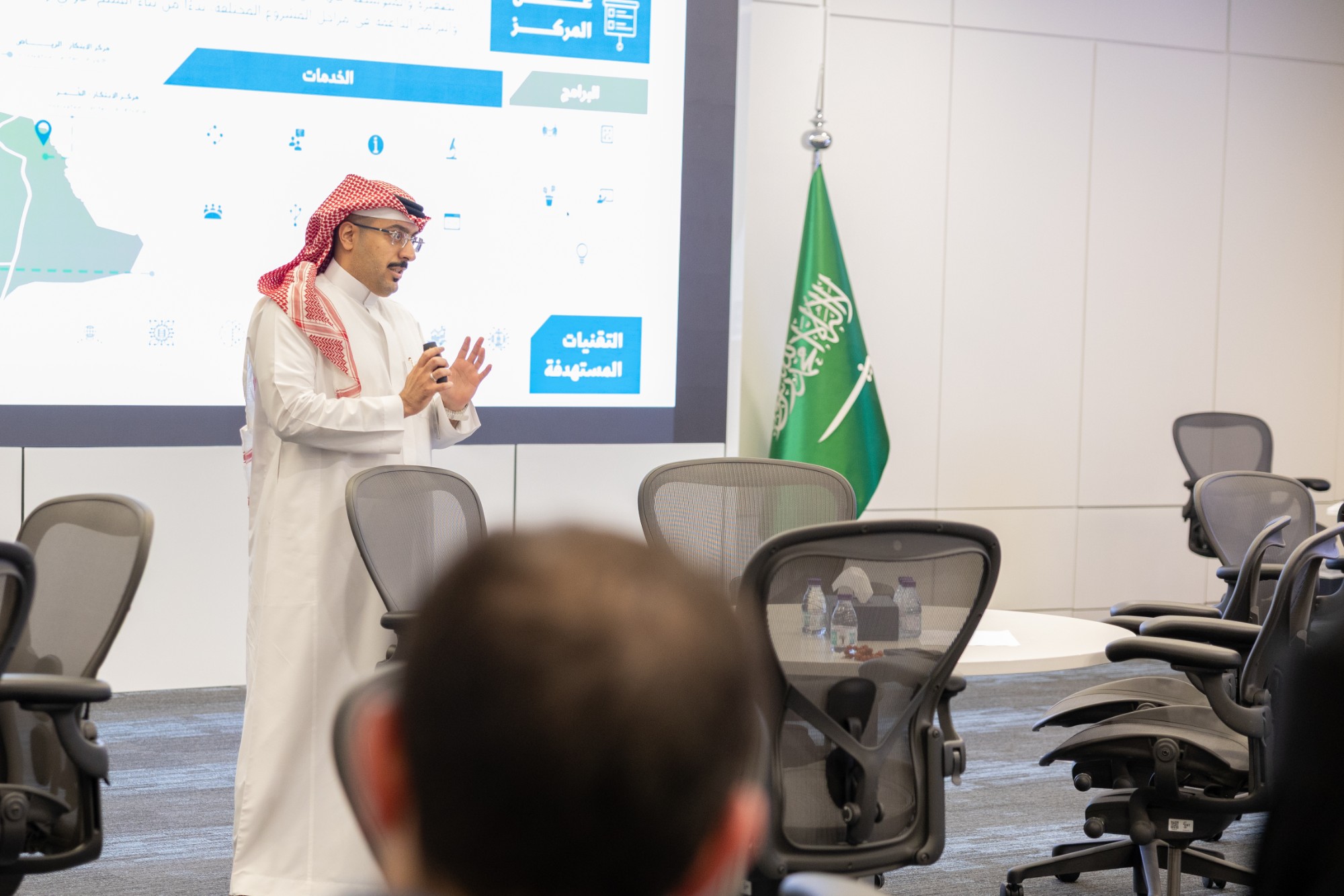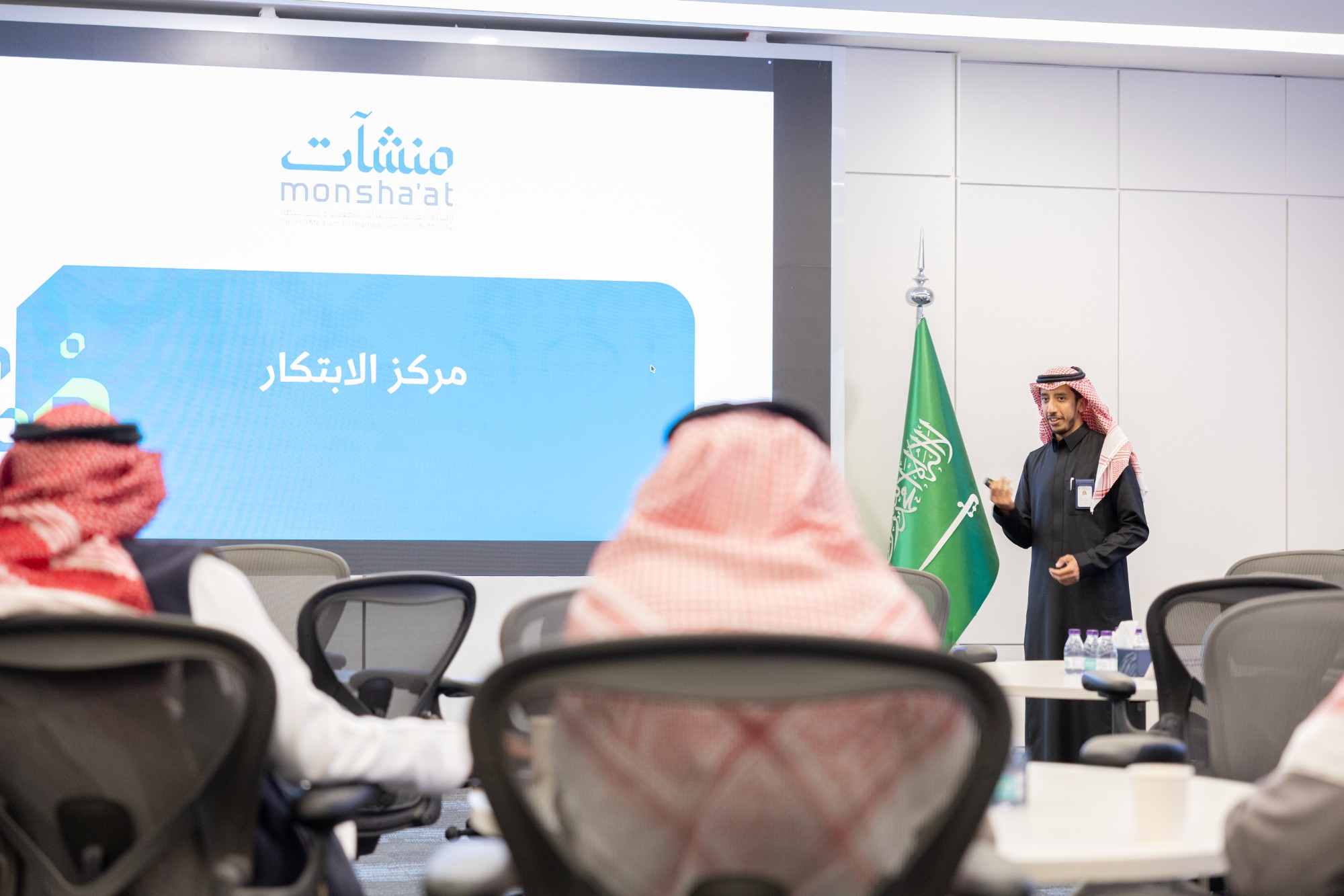 The session was organized in partnership with the Innovation Center at the Small and Medium Enterprises General Authority (Monsha’at), with the participation of representatives from service providers and technology companies, business incubators and accelerators, entrepreneurs, and investors.